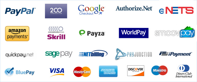 We work with Paypal, 2Checkout, Smoothpay , Worldpay and many other payment gateway providers